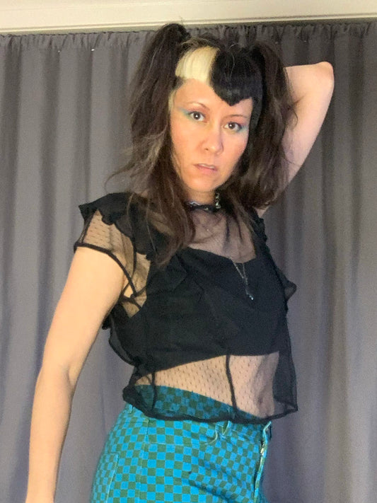 Zara Trafaluc Sheer Dot Mesh Ruffle Blouse
