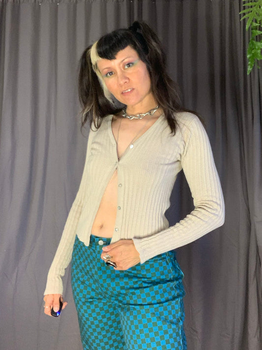 Vintage '90s-Y2K Q&A Pointelle Rib Cardigan