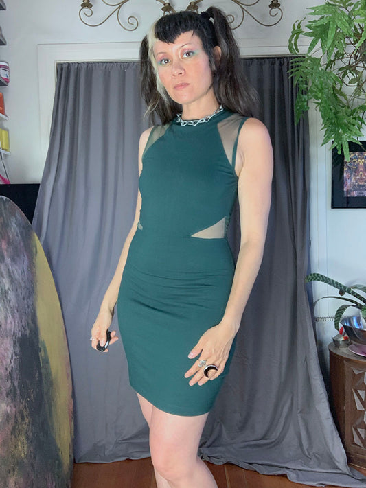 French Connection Teal Green Bodycon Dress with Mesh Insets