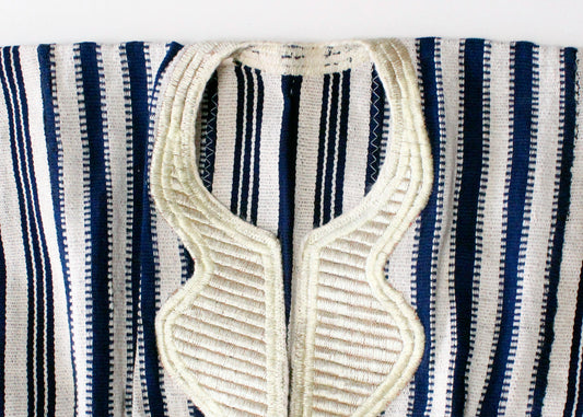 Vintage Striped Embroidered Caftan Dress with Belt & Pockets