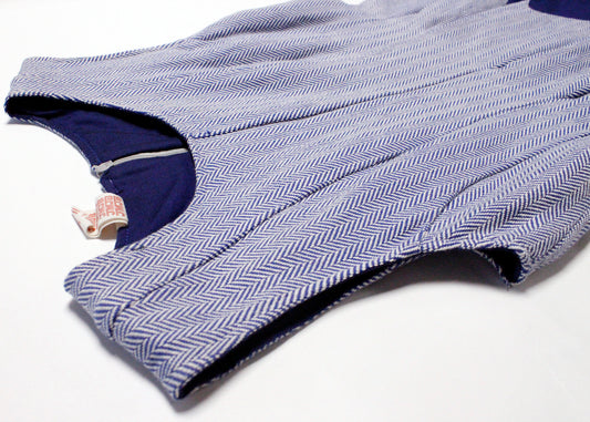 JMJB Blue Herringbone Pleated Sleeveless Jumper