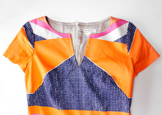 Trina Turk Big Bright & Bold Signature Geometric Print Short Sleeve Dress Sample