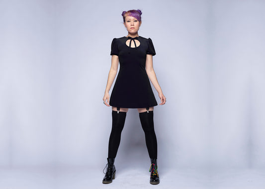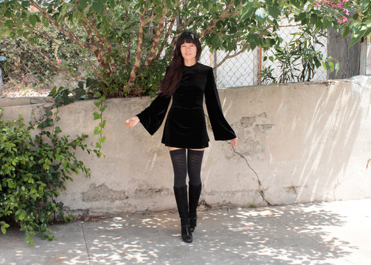 Anahata Mini Dress in Black Velvet (Made to Order)