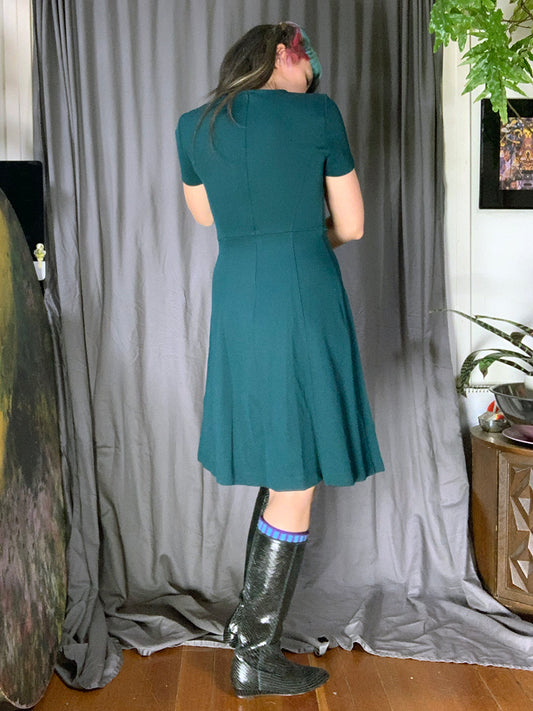 Lark & Ro Forest Green Fit & Flare Short Sleeve Dress