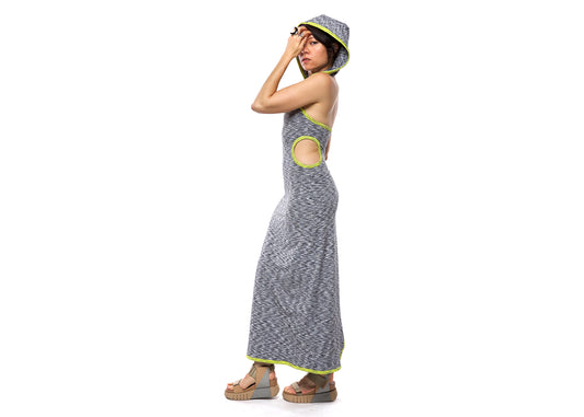 Cloud Grey Mesh Tank Dress with Scrunchable Ruched Side Slits