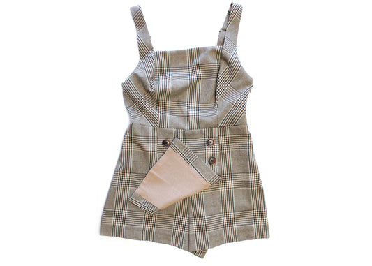 Urban Outfitters Taupe Plaid Schoolgirl Romper