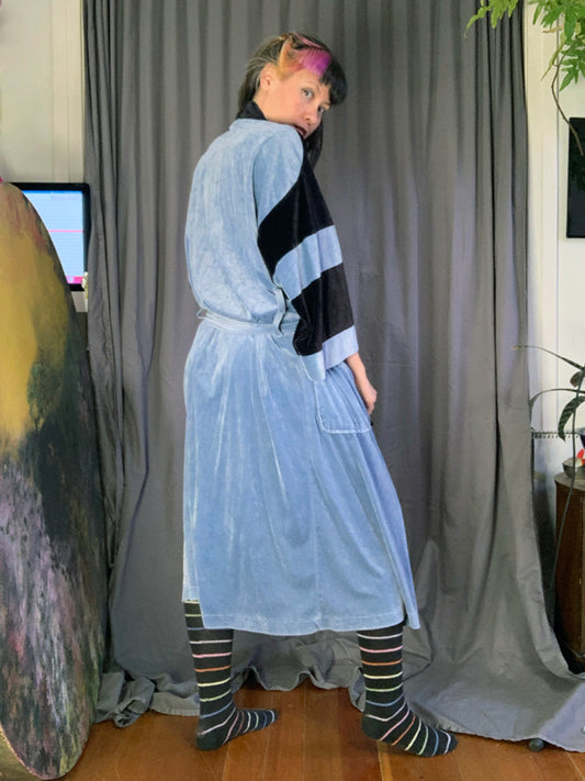 Christian Dior Monsieur Vintage Black & Blue Velour Sporty Robe de Chambre