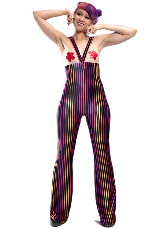 Va Va Voom Black & White Dots & Stripes Strapless Jumpsuit